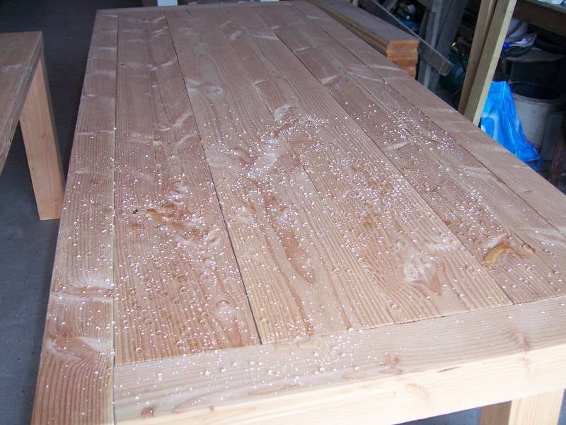 Deze bovenstaande tafels zijn behandeld met een onzichtbare en water afstotende coating